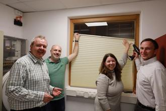Am 17.04.2024 übergaben die Aktiven von Wir.Machen.Gemeinsam. Kai Recht, Nastasia Daub und Sascha Schläfer an den 1. Ortsbeigeordneten Jürgen Heiler, den von Wir.Machen.Gemeinsam. gespendeten Plissee-Vorhang. Er dienst als Sichtschutz für das Fenster zur Halle im Schiedsrichter-/Sanitätsraum. Der Ortsgemeinderat hatte die Anschaffung im Februar beschlossen und WMG hatte sich spontan bereiterklärt, die Kosten dafür und auch die Montage zu übernehmen. Das Versprechen haben die Aktiven nun eingelöst.