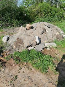 Binnen der letzten Wochen, vermutlich zwischen Mitte März und Mitte April, hat ein bislang Unbekannter im Bahnpfad auf dem unbefestigten Festplatz hinter dem Bürgerhaus eine große Menge Bauschutt illegal abgelagert. Es handelt sich unter anderem um Teer- und Betonbrocken mit einer Gesamtmasse von etwa 5 m³! Der Einsatz eines Lkw oder entsprechenden Hängers dürfte hierfür wohl erforderlich gewesen sein.