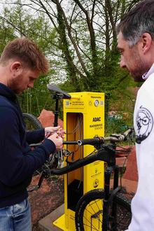 "Kümmerer" Christopher Dech und Andreas Faul (Vorsitzende des MTB Donnersberger Land) vor der Radservice-Station