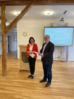 Aus den Händen von Verkehrsministerin Daniela Schmitt hat Bürgermeister Rudolf Jacob Anfang letzter Woche einen Förderbescheid zum Bau von insgesamt 5,67 KM Radweg in Höhe von 1,26 Mio. € erhalten. Es handelt sich um den 2. Förderaufruf des Förderprogramms Stadt-Land für den Bereich der Verbandsgemeinde Winnweiler. Im 1. Aufruf dieser Maßnahme sind die Radwege zwischen dem Bahnhof Langmeil und der Ortsgemeinde Münchweiler sowie zwischen Winnweiler und dem Wäschbacherhof bereits mit einer Quote von 90% gefördert worden.