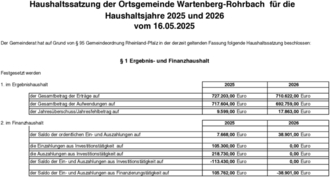 Haushaltssatzung der Ortsgemeinde Wartenberg-Rohrbach 2025/2026