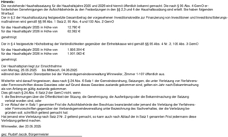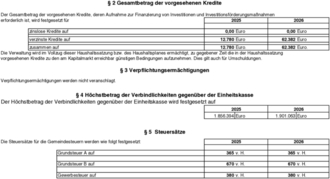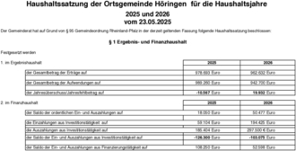 Haushaltssatzung der Ortsgemeinde Höringen 2025/2026