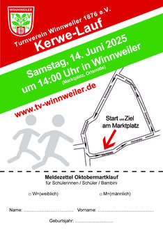 Auch dieses Jahr findet wieder der Kerwe-Lauf zur Juni-Kerwe in Winnweiler statt, für alle Kinder und Jugendlichen der Jahrgänge 2012-2020.