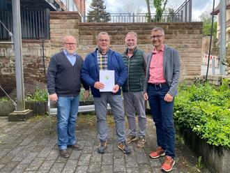 v.li. Bürgermeister Rudolf Jacob, Jubilar Andreas Stümpert, Personalratsvorsitzender Peter Schneller u. Bauamtsleiter Roland Schreiber