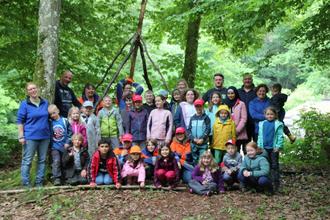 Das jährlich am Fronleichnamswochenende stattfindende Zeltlager der Bambini- und Jugendfeurwehr aus Imsbach und der Bambini-Feuerwehr aus Wartenberg-Rohrbach auf dem Zeltplatz im Langental in Imsbach, geht nun ins 17. Jahr. Im nächsten Jahr nicht mehr dabei, sollte es noch stattfinden, sind die Stiefel der Imsbacher Leitung Ute Korn. „Nach 23 Jahren haben sich nun die Sohlen meiner Stiefel abgelöst.“, trauert Ute Korn lachend und fügt hinzu, dass sie das jetzt auch dürfen. Claudia Wuttke, Gruppenleiterin der 8 von insgesamt 31 teilnehmenden Kindern und Jugendlichen aus Wartenberg-Rohrbach, hatte es in diesem Jahr auch nicht einfach. Die Teilnehmer waren sich einig, dass sie an den fachmännisch gebauten Marterpfahl musste, wie auf dem Gruppenfoto zu sehen ist.