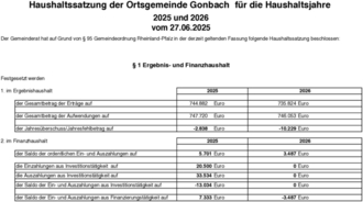 Haushaltssatzung der Ortsgemeinde Gonbach 2025/2026