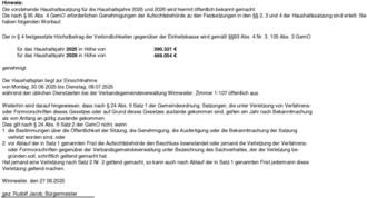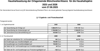 Haushaltssatzung der Ortsgemeinde Münchweiler/Als 2025/2026