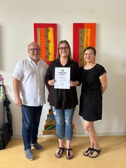 von links: Bürgermeister Jacob, die frischgebackene VG-Inspektorin Melissa Armbrüster und die Büroleiterin Tanja Thomas-Kipper