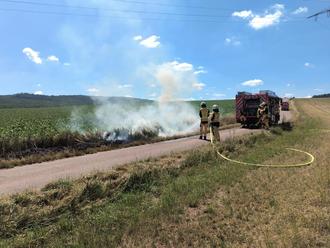 In Steinbach brannten auf etwa 50 m x 2 m abgemähtes Heu neben der L 394 Richtung Dannenfels. Die Feuerwehren Steinbach und Dannenfels konnten das Feuer schnell mit 2 Rohren löschen und die weiteren auf der Anfahrt befindlichen Kräfte abbestellen.