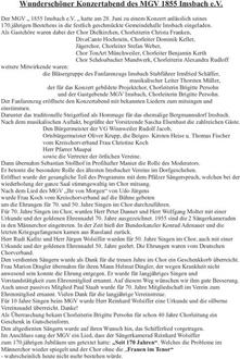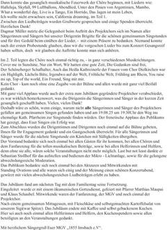 Im Anschluss sang der MGV ein Lied, dass der Sängerkamerad Reinhard Wolsiffer zum 170.jährigen Jubiläum um getextet hatte: „Seit 170 Jahren“. Welches die Probleme im Männerchor wieder spiegelt und der Chor ohne die „Frauen im Tenor“ - wahrscheinlich heute nicht mehr bestehen würde.