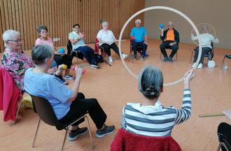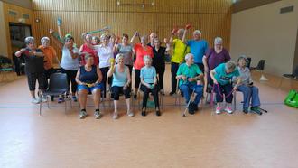 Selbstverständlich freut sich die Senioren-Gymnastik-Gruppe über jeden neuen Teilnehmer, diese dürfen gerne zwischen 70 – 100 Jahre alt sein. Die Gymnastik selbst ist auf diese Altersgruppe zugeschnitten – es werden keine Übungen mehr auf dem Boden gemacht, weil es vielen in dem Alter schwerfällt, wieder aufzustehen. Stattdessen werden ca. 30 Minuten Übungen im Stehen durchgeführt und danach noch eine halbe Stunde auf den Stühlen im Sitzen. Dabei wird Rücksicht genommen auf die allgemeine Fitness der Senioren. Es muss auch nicht jeder jede Übung mitmachen, sondern nur die die er kann, zumal in der Gruppe auch Senioren mit Behinderungen teilnehmen.