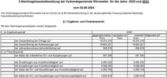 2. Nachtragshaushaltssatzung mit 1. Nachtragshaushaltsplan 2023/2024 Verbandsgemeinde Winnweiler
