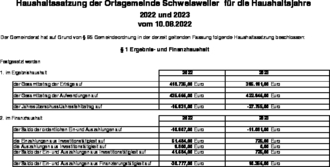 Haushaltssatzung 2022/2023 Ortsgemeinde Schweisweiler