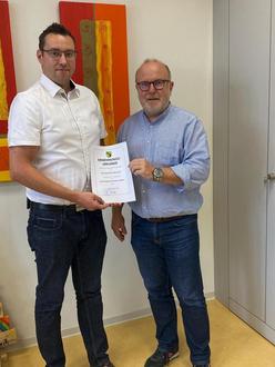 Mit Abschluss seines Bachelor-Studiums an der Hochschule für öffentliche Verwaltung konnte Bürgermeister Rudolf Jacob den Leiter des Referates „Bürgerdienste“, Dominik Lothschütz, zum Verbandsgemeindeoberinspektor befördern. Herr Lothschütz hat die Aufgabe des Referatsleiters im Frühjahr vom damals in die Pension gehenden Beamten Thomas Jung übernommen. Der erfolgreiche Abschluss des dualen Studiums für das 3. Einstiegsamt war die formale Voraussetzung für die Beförderung.