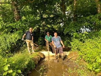 Im Rahmen eines mehrstündigen ehrenamtlichen Arbeitseinsatzes im Juli von Oliver Baumgart, Ralf Grusa und Jürgen Berberich wurde der Auslauf des Teiches in der Gonbacher Kneippanlage erneuert. Die Holzdielen des bisherigen Auslaufes in den Gonbach waren schadhaft und mussten ersetzt werden. Ohne die Erneuerung wäre der Wasserstand des Teiches erheblich gesunken. An dieser Stelle bedanke ich mich ganz herzlich bei Oliver Baumgart und Ralf Grusa für ihre Unterstützung und tatkräftige Mithilfe.