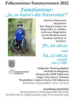Der Flyer „Falkensteiner Sommertouren 2022“ mit allen Angeboten und den exakten Terminen steht unter www.winnweiler-vg.de zum Download zur Verfügung.