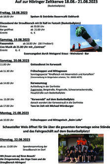 | ca. 15.00 Uhr | "Kerweredd" auf dem Basketballplatz |