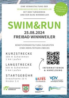 In der Zeit von 9 Uhr bis circa 16 Uhr findet am Sonntag, dem 25.08.24 die Sportveranstaltung "Swim&Run" im Freibad Winnweiler statt. Der reguläre Badebetrieb ist im Anschluss an die Veranstaltung wie gewohnt möglich. Zuschauer sind herzlich willkommen und können das Schwimmbad kostenfrei betreten.