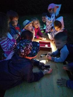 Nach zweijähriger Coronapause durften unser Schulanfänger nun auch endlich wieder in der Kita übernachten. Gemeinsam haben wir vorher überlegt was wir denn an diesem besonderen Tag so alles tun könnten. Die Entscheidung fiel auf Pizza zum Abendessen und eine Nachtwanderung. Als wir dann frisch gestärkt, nach der Generalprobe für unseren Auftritt am nächsten, morgen die Kita verlassen haben, entdeckten wir eine Schatzkarte. Natürlich beschlossen die Kinder direkt, dass wir nachschauen müssen ob auch wirklich ein Schatz versteckt ist. Nach einiger Zeit und Knobeleien über der Schatzkarte, konnten wir tatsächlich einen Schatz entdecken. Im Garten bei Frau Liefländer erwartete uns die Schatzkiste und ein tolles Lagerfeuer. Nachdem wir unseren Schatz aufgefuttert hatten, ging es müde zurück in die Kita. Dort erwartete uns noch eine Gutenachtgeschichte bevor dann allen schnell in ihren hergerichteten „Betten“ die Augen zufielen. Nach einer kurzen Nacht waren die Eltern zum gemeinsamen Frühstück eingeladen. Danach folgte der lang erwartete Auftritt der Kinder. im Anschuß an das gemeinsam festgelegte Programm durfte jedes Kind seine Schultüte bereits vollgepackte Schultüte in Empfang nehmen. Die Füllung wurde gespendet von Edeka Daigle in Enkenbach, Buchhandlung Frank in Winnweiler und Molter Werbedruck aus Sippersfeld. Zum Abschluss wurde jedes Vorschulkind noch von den Erzieherinnen aus der Kita „geworfen“. Dank einer dicken Matte sind alle weich gelandet.