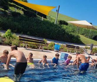 Die Vorschulkinder der Kita Sternschnuppe durften in den letzten Wochen ihrer Kindergartenzeit noch einige besondere Aktivitäten erleben. Begonnen hat es mit den erstmals angebotenen Besuchen im Schwimmbad. An einigen Vormittagen sind wir gemeinsam mit dem Bus der VG und einem Privat PKW nach Winnweiler ins Schwimmbad gestartet. Dort haben wir gemeinsam mit den Kindern Spiele zur Wassergewöhnung gespielt und an den folgenden Terminen auch erste Schwimmübungen erlernt. Der Spaß stand hierbei natürlich für alle im Vordergrund. Jeder Schwimmbadbesuch wurde freudig erwartet und war immer wieder ein ganz besonderes Erlebnis für die Kinder.