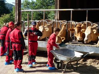 Tiere zum Anfassen war für die Kinder ein großes Highlight. Sie wurden in die verschiedensten Arbeitsprozesse des Hofgutes integriert und bekamen Einblicke in Fütterung und Umgang mit kleinen Schafen und Kälbern.