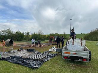 Anfang Januar wurde der Förderantrag über die Großgeräte Förderung beim Sportbundes Pfalz mit bis zu 1000€ gestellt, wofür der Verein Ende Februar die Zusage bekam. Die restlichen Kosten übernahm der SVB. Direkt im Anschluss wurde das Bauvorhaben von Jonas Windecker in einer Ausschusssitzung vorgestellt und man entschied sich dafür. Dank zahlreichem ehrenamtlichem Engagement konnte der Bau vereinsintern abgewickelt werden. Jonas Windecker übernahm die allgemeine Organisation, so managte er bspw. die Arbeitseinsätze und setzte sich mit den Firmen auseinander. Auch auf diesem Wege vielen lieben Dank für die Organisation! An insgesamt fünf Tagen wurde das Außenrack gebaut. Beim ersten Arbeitseinsatz im April wurde die Grube ausgehoben und die Erde abtransportiert. Für alle Erdarbeiten gilt Familie Denschlag ein großes Dankeschön, welche die Erdarbeiten mit ihrem Bagger und Radlader unterstützen. Daraufhin wurden am nächsten Arbeitseinsatz die Randsteine gesetzt. Am dritten Arbeitseinsatz wurden die Fundamente betoniert, am vierten wurde der Schotter geholt und abgerüttelt. Beim fünften und letzten Arbeitseinsatz Anfang Juli wurde schließlich das Rack aufgebaut und die Fallschutzmatten ausgelegt. Ebenfalls ein großer Dank geht an die Firma Graf für die Lagerung des Materials und des Außenracks bis zum Aufbau. Sowie an Familie Karch, insbesondere Johannes Karch, für den Transport vom Baumaterial mit dem Traktor und dem Teleskoplader.