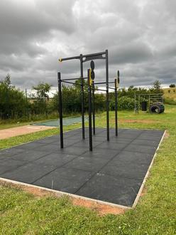 Schon seit längerer Zeit wünschte sich die Fitnessgruppe zum Trainieren ein Außenrack. An diesem kann man Klimmzüge, div. Bauchmuskelübungen, Kniebeugen mit Gewicht, Bankdrücken, Seilklettern und Slamballs durchführen. Somit ein äußerst interessantes Trainingsgerät für die Fitnessgruppe.