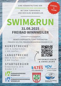 In der Zeit von 9 Uhr bis ca. 16 Uhr findet am Sonntag die Sportveranstaltung "Swim&Run" im Freibad Winnweiler statt. Der reguläre Badebetrieb ist im Anschluss an die Veranstaltung wie gewohnt möglich. Zuschauer sind herzlich willkommen.