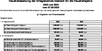 Haushaltssatzung 2022/2023 Ortsgemeinde Imsbach