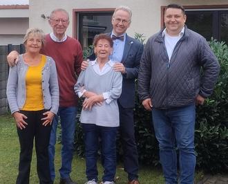 Am 11.09.2024 feierten das Ehepaar Nicole und Rudolf Förster ihre diamantene Hochzeit. Zu ihrem Jubiläumstag kamen viele Gratulanten und wünschten dem Ehepaar, zu ihrem 60. Hochzeitstag alles Gute! Für den Donnersbergkreis gratulierte Landrat Rainer Guth ganz herzlich. Im Namen der Verbandsgemeinde Winnweiler kam die Beigeordnete Frau Christiane Demmerle und überbrachte die besten Glückwünsche. Für die Ortsgemeinde Börrstadt gratulierte Ortsbürgermeister Torsten Windecker dem Ehepaar und wünschte ihnen viele weitere gemeinsame Jahre. Stolz erzählte Rudolf Förster wie sich die beiden kennen gelernt haben. Er arbeitete in Kaiserslautern als Friseur in dem Haus, wo damals Nicole wohnte. Sie stammt aus Frankreich und war aufgrund ihrer Funktion als Kindermädchen und Haushälterin, als sogenannte Gouvernante, in Deutschland. Irgendwann nach Fasching war es dann soweit und die beiden wurden zu einem Paar. Ein Jahr nach dem Unterzeichnen des Deutsch-Französischen Freundschaftsvertrags, schlossen die beiden ihren persönlichen Vertrag des Lebens und heirateten. Damals konnte die Hochzeit noch durch den Ortsbürgermeister vollzogen werden. Und so heirateten sie in dem Jahre 1964, bei dem damaligen Ortsbürgermeister Jakob Demmerle, in dessen Bürgermeisteramt. Auch wenn es anfänglich große Sprachbarrieren gab, so gingen sie seither alle Wege gemeinsam. Um die familiären Beziehungen nach Frankreich aufrecht zu erhalten, fuhren sie regelmäßig jährlich nach Frankreich. Sie sind Eltern von drei Kinder und zwei Enkelkinder. Gemeinsam wurde mit der Familie gefeiert und der besondere Jubiläumstag vollbracht. Im Namen der Ortsgemeinde wünschen wir dem rüstigen und lebensfrohen Ehepaar weiterhin alles Gute und noch viel Zeit, die sie gemeinsam miteinander und mit ihrer Familie verbringen dürfen.
