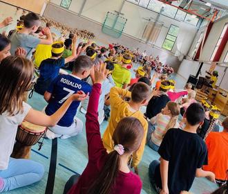 Diese neu erworbenen Kenntnisse präsentierten sie dann am Nachmittag bei einem großen Trommelkonzert ihren Eltern und Erziehungsberechtigten.