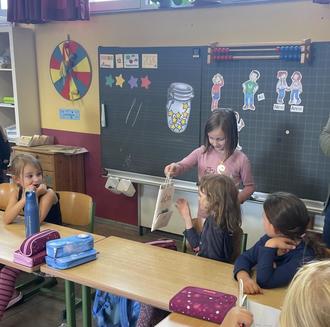 Die Aktion „Lesetüte“ der IG Leseförderung ist eine deutschlandweite Buchhandelsaktion, die Kinder schon früh für das Lesen begeistern möchte. Jede Lesetüte enthält ein altersgerechtes Buch, das Lust auf Geschichten machen soll. Mit viel Fantasie wurden die weißen Tüten von unseren Zweit- und Drittklässlern schon vor den Ferien für unsere „Neuen“ mit farbenfrohen Motiven und Glückwünschen zum Schulanfang gestaltet.