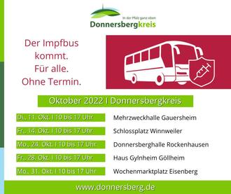 Hier eine Übersicht der Termine des Impfbusses Rheinland-Pfalz im Oktober im Donnersbergkreis: