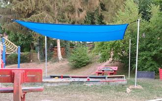 Während eines Helfereinsatzes, der durch die Dorfmoderationsgruppe „Spielen und Bewegen“ organisiert worden war, wurden die Fundamente für die Pfosten hergestellt. Nach der Aushärtung wurden diese installiert, damit am Ende das Segel gespannt werden konnte. Über die heißen Sommermonate hat das Sonnensegel unseren Minis auf dem Spielplatz schon gute Dienste getan. Ein herzliches Dankeschön an die Firma 100% RE IPP GmbH & Co. KG für diese Spende und an alle dorfeigenen Helfer:innen sowie unserem örtlichen Garten- und Landschaftsbauer für die Bereitstellung von Arbeitsgeräten und Fahrzeug.
