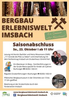 Auch an kulinarischen Angeboten wird es nicht fehlen: An der Grubenhütte wird der Förderverein Imsbach die Besucherinnen und Besucher an diesem Tag bewirten und freut sich auf zahlreiche Gäste zum Abschluss einer besonderen Saison mit vielen Abenteuern.