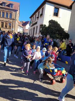 Nach zwei Jahren war es endlich soweit und die Imsbacher Kerwe konnte in gewohntem Umfang stattfinden. Am 2. Oktoberwochenende war in unserem kleinen Dörfchen ordentlich was los und auch unser Kindergarten konnte wieder am Umzug teilnehmen. Für viele unserer Kindergarten-Kinder war es der erste Umzug, so dass die Aufregung bereits vor dem Start riesig war. Passend zu unserem Namen „Sternenhimmel“ waren alle kleinen und großen Teilnehmer in blau gekleidet und mit Sternen beklebt.