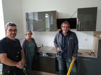 Um die Kath. Öffentliche Bücherei Börrstadt für Besucher attraktiver zu machen, erklärte sich der Elisabethenverein Börrstadt bereit zur Unterstützung. Dies sah so aus, dass der Verein die Finanzen für die Anschaffung der Küchenzeile bereitstellte und auch die Lieferung organisierte. Hier besonderen Dank an Dr. Gerd Karch, Guido Wiemer und Michael Diehl. Reimund Fattler erklärte sich bereit, die Küche aufzubauen, was einen größeren Zeitaufwand für ihn bedeutete. Erich Fattler brachte sich für den Wasseranschluss ein. Margareta Stüber war bei der Planung mit eingebunden und reinigte mit großem Einsatz mit einem speziellen Reiniger (von Heiderose Egelhofer) den Fußboden. Dieser war doch sehr in Mitleidenschaft gezogen durch die Jahre, in denen der Raum als Jugendraum genutzt worden war. Der Gemeindearbeiter hatte sich schließlich sehr eingebracht bei der Renovierung des ehemaligen Jugendraumes. Er hatte die von der Fa. Heinrich Graf, Börrstadt, bereitgestellten Tapeten angebracht und mit Farbe, ebenfalls von der Fa. Graf gesponsert, versehen. Dem Ortsbürgermeister Torsten Windecker war es auch immer ein großes Anliegen, den Umzug und die Bereitstellung der Räumlichkeiten zu unterstützen und zu begleiten und dem Gemeindearbeiter die Zeit einzuräumen zur Renovierung.