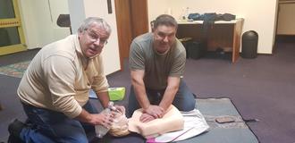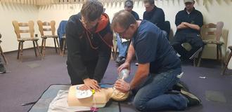 In der wöchentlichen Übungseinheit hatten die Feuwehrmänner aus Börrstadt, am 17.10.2022, eine ganz besondere Übungsstunde. Sie frischten ihr Erste-Hilfe Wissen auf, mit dem Schwerpunkt Reanimation. Die Feuerwehrärztin aus Winnweiler, Dr. Christine Täffner führte die Ausbildung durch. Perfekt vorbereitet und mit dem notwendigen Equipment ausgestattet, erklärte sie alle wichtigen und lebensentscheidenden Maßnahmen. Beim Auffinden einer hilflosen Person zählt nur eines: Sofort den Notruf absetzen und bei Herzstillstand die Reanimation einleiten. 30 mal Herzdruckmassage, danach 2 mal beatmen! Am besten mit einem Beatmungsbeutel und falls verfügbar mit Unterstützung eines Defibrillator. Man kann nichts falsch machen, außer wenn man nichts macht! Dankenswerterweise konnte auch ich mein Wissen noch einmal auffrischen. Nach einer kurzen Übungsphase klappte es auch wieder! Vielen Dank an Dr. Christine Täffner für diese tolle und wichtige Ausbildung! Die Feuerwehr war sich einig, dass sie jetzt regelmäßig verschiedene Erste-Hilfe Themen üben wird. Wehrführer Georg Dick möchte diese wichtige Übungseinheit, in den wiederkehrenden Ausbildungsplan dauerhaft aufnehmen! Lebenswichtige Maßnahmen, die umgehend beim Auffinden einer hilflosen Person eingeleitet werden müssen, kann jeder lernen. Und jede Hilfe zählt!
