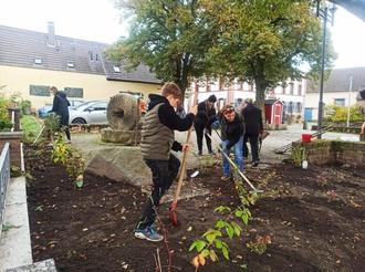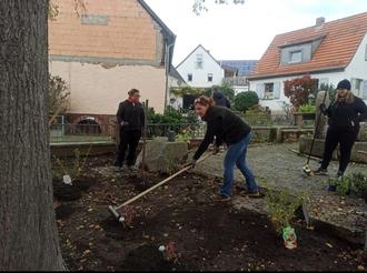 Anlässlich des 60-jährigen Bestehens des Alsenbrück-Langmeiler Landfrauen-Ortsvereins entstand der Gedanke, anstelle eines Ausfluges und großer Party einen Beitrag für die Ortsgemeinschaft zu leisten. Schnell kam dem Vorstandsteam die Idee, einen Nasch- und Duftgarten am Dorfplatz anzulegen, der für alle Bürgerinnen und Bürger zugänglich ist. Umgesetzt wurde die Idee am Sonntag, dem 06.11.2022. Die Pflanzaktion startete gegen 13:00 Uhr. Mit Hilfe einiger Kinder und der tatkräftigen Unterstützung einiger Ehemänner fanden Johannisbeeren, Heidelbeeren, Brombeeren, Stachelbeeren sowie verschiedene Sorten Pfefferminz einen Platz, wo sie hoffentlich gut wachsen und gedeihen. Dank der Gießwasserspende der Anwohner in der Nachbarschaft, sollte dem auch nun nichts im Wege stehen.