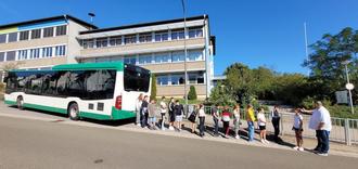 Vor den Herbstferien bekamen die 5. Klassen Besuch von der VRN-BusSchule. Herr Heinz kam mit einem Linienbus an die Realschule plus Winnweiler und belehrte die Schüler klassenweise über sicheres Verhalten an der Haltestelle. Er übte mit ihnen das richtige Ein- und Aussteigen, gab Sicherheitshinweise während der Fahrt und erklärte die Schilder im Bus.