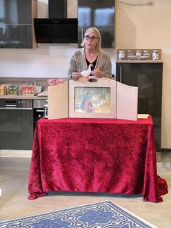 Das Kamishibai Erzähltheater, das aus Japan stammt, wird immer beliebter. Frau Martina Marx-Schöneberger hatte sich bereiterklärt, die Geschichte des St. Martin in der KÖB Börrstadt mit Hilfe der Kamishibai-Bildkarten zu erzählen.