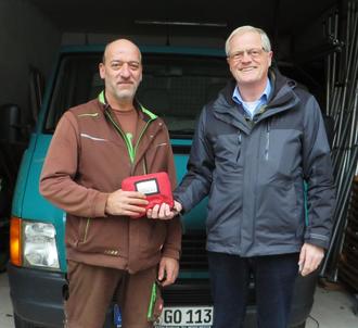 Ortsbürgermeister Jürgen Berberich beglückwünschte Herrn Schildknecht zu seiner neuen Aufgabe und übergab ihm Mitte November die Schlüssel und das Gemeindefahrzeug.
