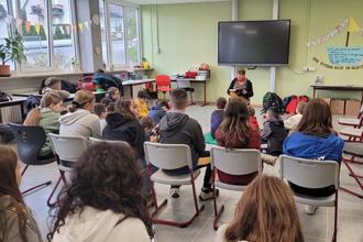 Frau Dietrich las aus dem Buch „Warrior Cats: In die Wildnis“ von Erin Hunter vor. Die Schülerinnen und Schüler tauchten ein in eine fantastische Welt, in der Katzen ungezähmt in Clans zusammenleben und in vollen Zügen ihr wildes Leben im Wald genießen.