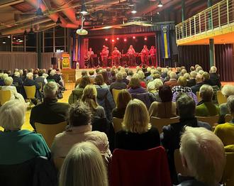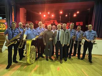 Im weiteren Verlauf begeisterten die "Men in blue" die Zuhörer mit musikalische Höhepunkten wie die bekannte Tatort-Titelmusik von Klaus Doldinger sowie die schwungvolle Titelmelodie aus dem Filmklassiker „Unterwegs in Beverly Hills“. Die professionelle Darbietung und die lebendige, unterhaltsame Moderation sorgten dafür, dass die rund 200 Gäste von Anfang bis Ende begeistert mitgingen.
