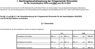 1. Nachtragshaushaltssatzung der Ortsgemeinde Winnweiler
