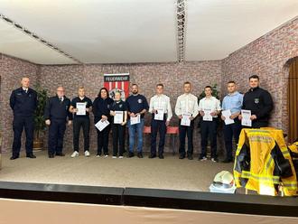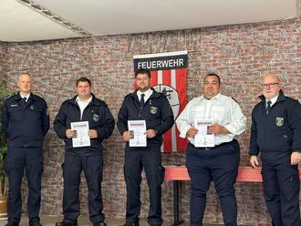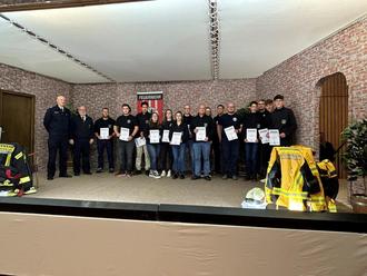 Zur Oberfeuerwehrfrau / zum Oberfeuerwehrmann wurden befördert: Axel Baumgart, Leon Kuby, Tanja Müller, Manuel Schler, Cedric Becker, Lukas Scheib, Laura Scheib, Paul Clemens, Jonas Hanauer, Luca-Adrian Herzog, Tim Jäger, Annika Pitz