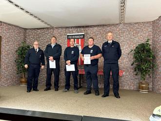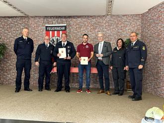 Für 25 Jahre wurden mit dem Silbernen Feuerwehrehrenzeichen geehrt: Michael Hartmüller und Torsten Leucht