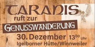 Genusswanderung (ca. 2 Stunden) am 30. Dezember um 13 Uhr. Treffpunkt: Igelborner Hütte, Kosten 45 € pro Person, Anmeldung unter: 0176 57924248 (per WhatsApp) oder nordpfalz.brennerei@googlemail.com.