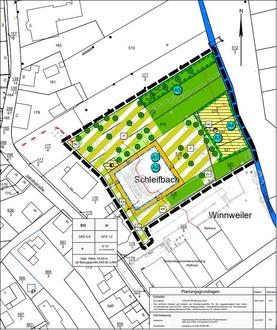 In der Diskussion stellten der Ortsbürgermeister und alle im Ortsgemeinderat vertretenen Fraktionen heraus, dass man den Lohnsbachpark keinesfalls in Frage stelle, im Gegenteil, diesen attraktiv gestalten wolle. Der Ortsbürgermeister wies darauf hin, dass die Fichten mittlerweile eine Gefahrenstelle dargestellt haben, weil diese teilweise bereits abgestorben waren und bei starkem Wind es bereits wiederholt zu Windbrüchen gekommen sei. Er verwies auf den beschlossenen und unten abgedruckten B-Plan „Schleifbach“, der die Pflanzung von 11 neuen Laubbäumen zwischen dem Park und der Außenanlage des Ärztehauses vorsehe. Insgesamt werden in der Außenanlage des Ärztehauses 32 Laubbäume neu gepflanzt, die für Schatten und Abkühlung sorgen sollen.