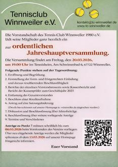 Tennis-Club Winnweiler e.V. - Jahreshauptversammlung des Tennisclub Winnweiler 1980 e.V.
